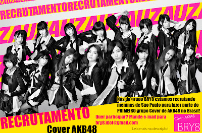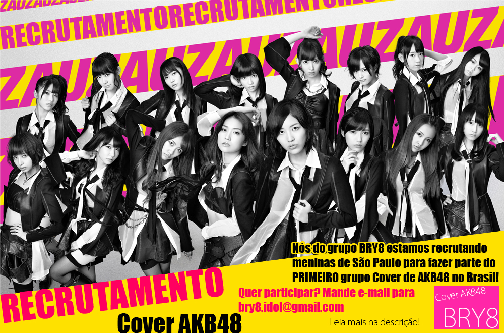 alguém finalmente está organizando um grupo cover do AKB48. E o nosso blog está aqui para apoiar e divulgar o projeto BRY8 Cover Dance.Para quem não viu o post anterior, o grupo está sendo organizado pela Raito e atualmente tem apenas 8 membros inscritas, para mais informações confiram no post anterior de estréia do projeto.
